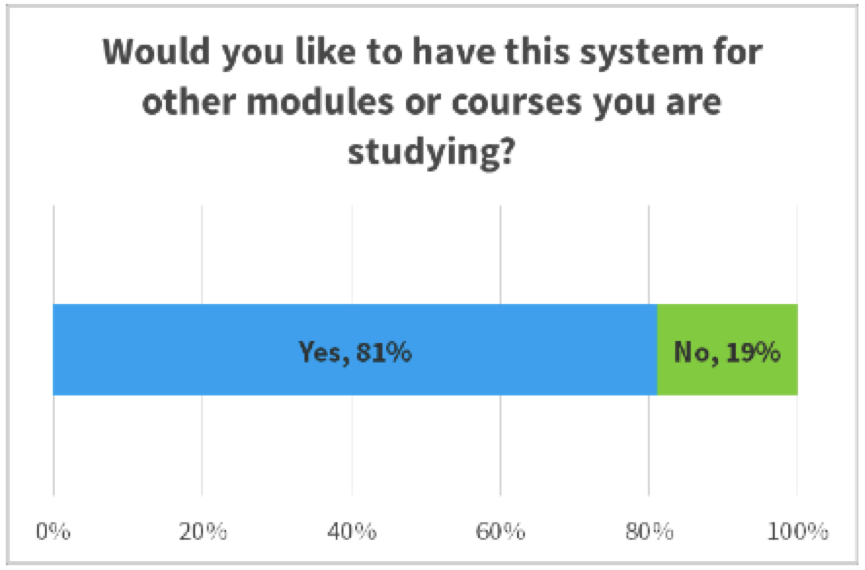 Over 80% of students on this first experience of an adaptive course, said they wanted to use this approach in other modules and courses. This is heartening, as without their acceptance, it is difficult to see this approach working well.