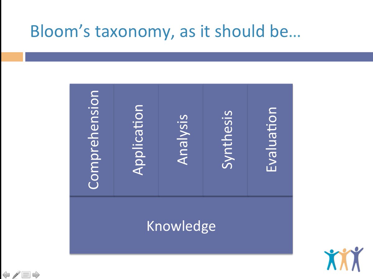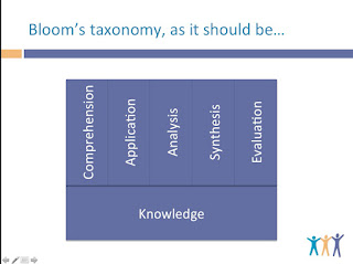 The pyramid is worrying, as a sophisticated theory and its even more sophisticated revision, were essentially bastardized to represent a hierarchy, in which one had to progress from one stage to another, whereas learning is far more complex with different cognitive processes interacting and intertwined with each other. This is not to say that there are no dependencies. There is a strong argument for seeing knowledge as foundational in these taxonomies.